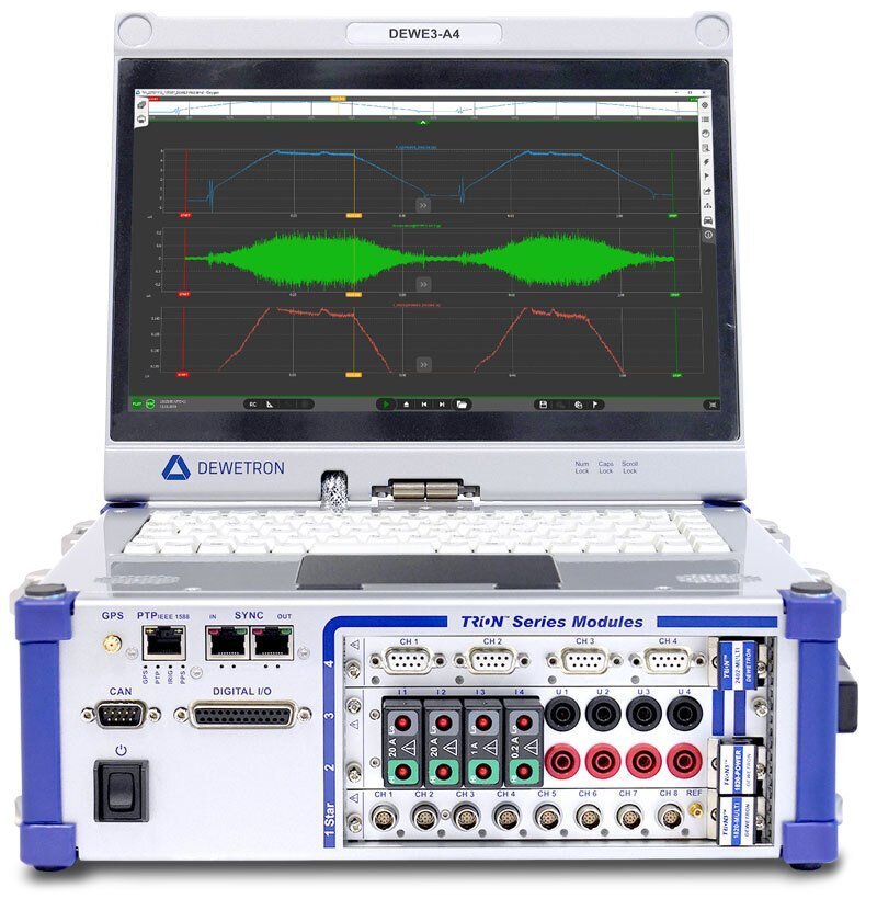 DEWE3-A4支持所有高速TRION3和TRION模塊。DEWETRON為幾乎所有傳感器和輸入提供TRION(3)模塊,如電流、電壓、功率、振動(IEPE)、橋(應(yīng)變計)、電位器、RTD、CAN、計數(shù)器輸入、熱電偶等。使用外部時間源進(jìn)行同步,如GPS、PTP或IRIG。